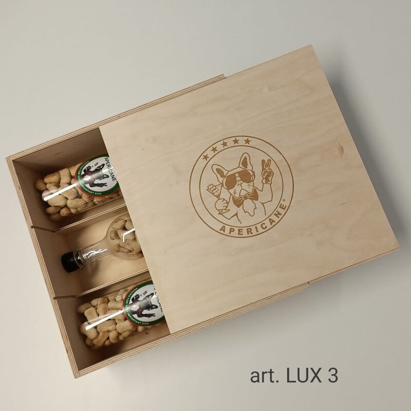 BIRCH WOOD BOX WITH FIRE-PRINTED LOGO OPENING WITH SIDE SLIP SOLD FULL